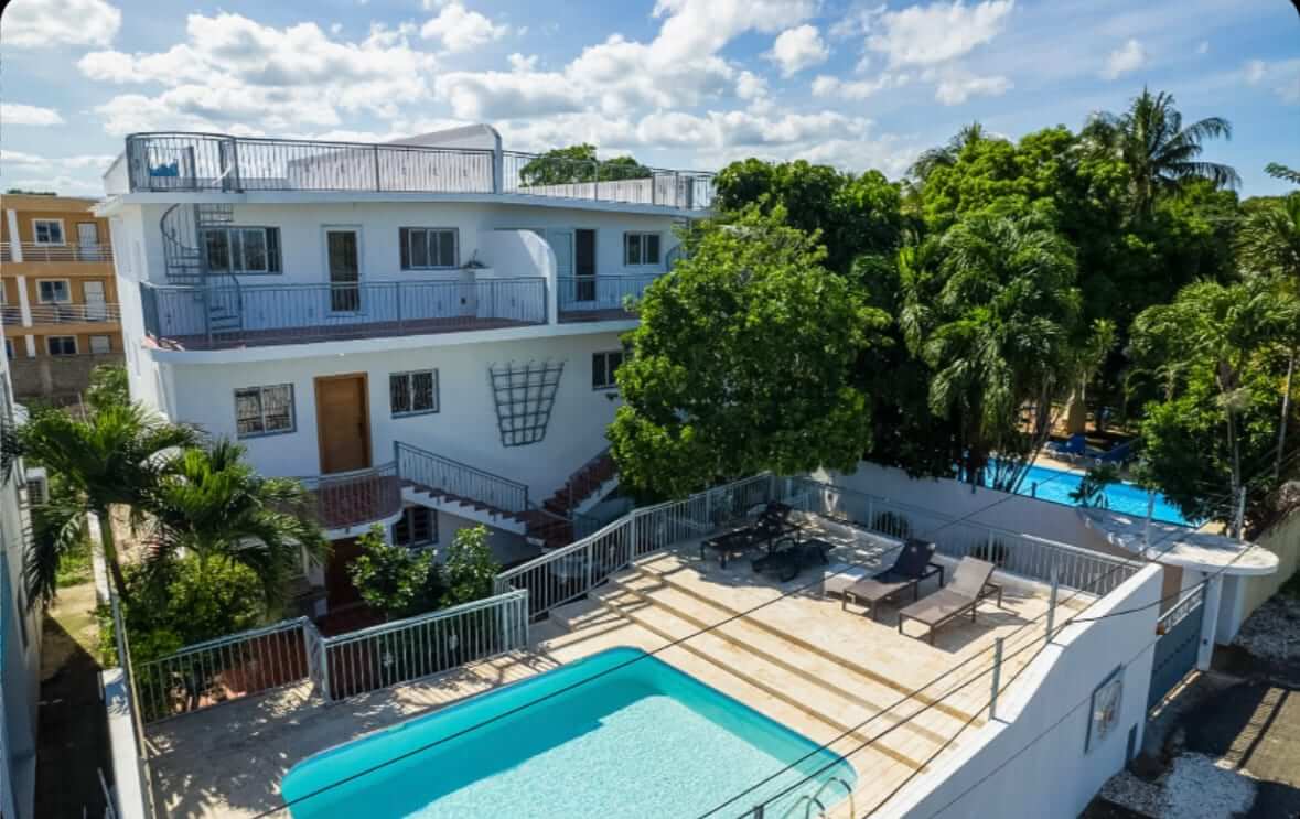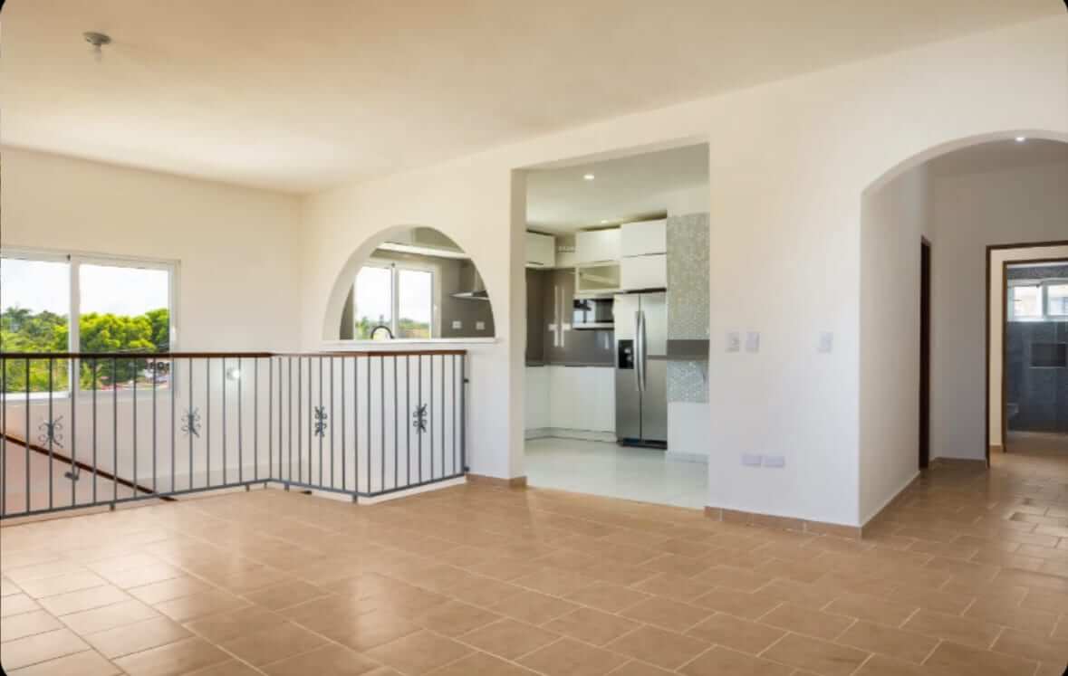 This three-bedroom townhome for sale in Cabarete was built at the end of a quiet street in the popul...